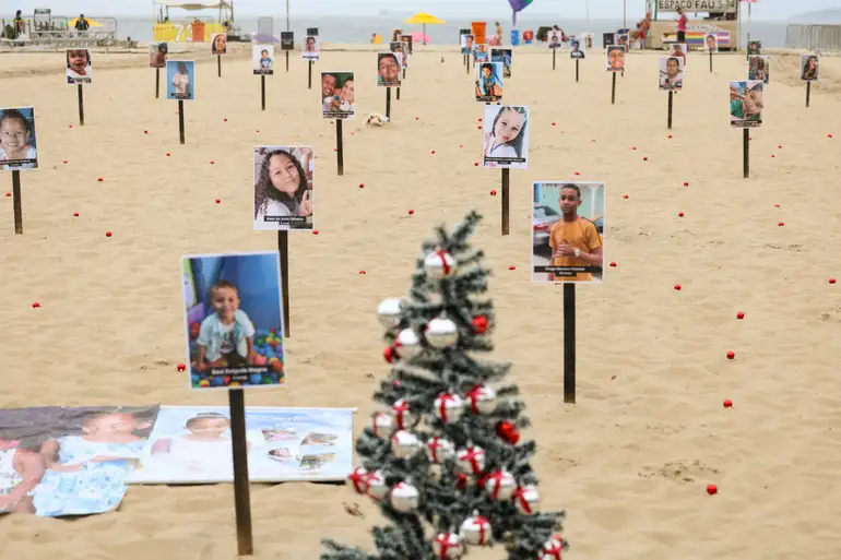 活动者还在海滩上竖起了一棵带有十字架图案装饰球的圣诞树,提醒联邦政府和州政府关注受害者家属在圣诞节感受到的悲伤和痛苦。该组织创始人安东尼奥·卡洛斯·科斯塔(Antônio Carlos Costa)表示:“这些都是生活在贫民窟的孩子。这些凶杀案的责任人并不明确,政府也不关心,未能满足受害者亲属在经济、心理和情感方面的需求。他们经常陷入抑郁,无法工作,每天生活在痛苦中。”