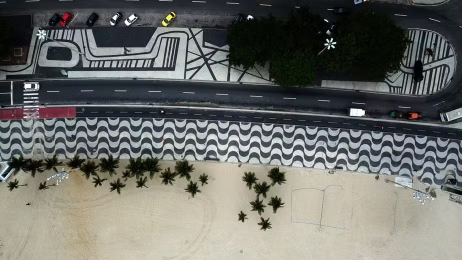 在关于科帕卡巴纳海滩的描述中,皇家艺术学院强调了沿整个海岸线铺设的黑白相间的马赛克人行道,并引用了它的创造者、景观设计师罗伯托·布雷·马克斯(Roberto Burle Marx)的话,将这些用黑色和白色石块拼接而成的步道称为“与周围自然和谐相处的表现主义作品”。