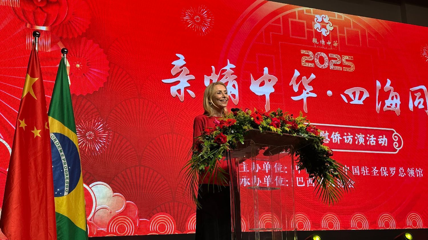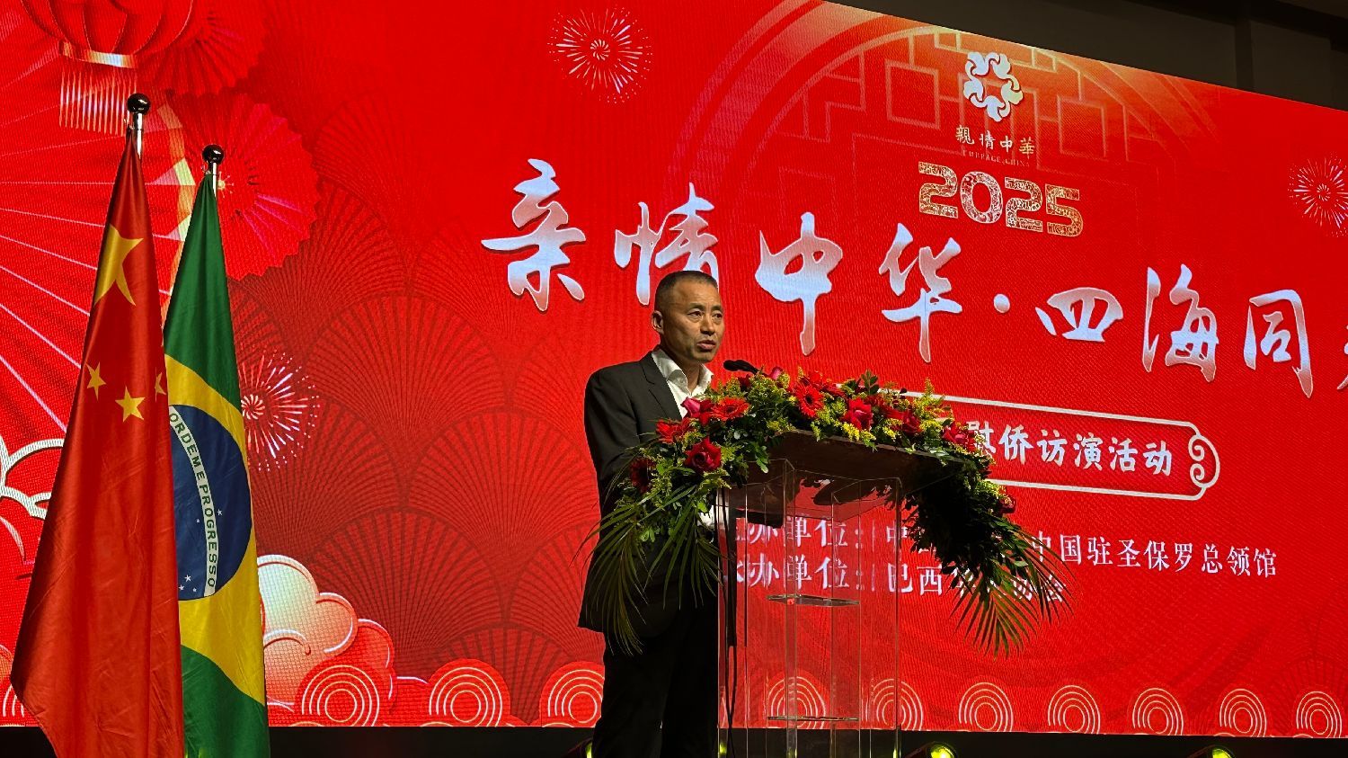 中国侨联文化交流部副部长车壮丽致辞表示,“亲情中华·四海同春”慰侨演出一直以来都是连接祖(籍)国与海外侨胞的重要情感桥梁,承载着来自祖(籍)国的深切问候与美好祝福,代表着中国侨联对海外侨胞的关怀与牵挂。今天这场演出是圣保罗侨胞相聚的盛会,也是大家寄托乡情、传承文化的重要契机。希望通过慰侨演出,能让侨胞们在熟悉的旋律和故事中,感受祖籍国的温暖祝福,找到心灵的慰藉和力量,也希望能让更多的人了解中国优秀文化的魅力,感受中国人和合共生的价值追求。