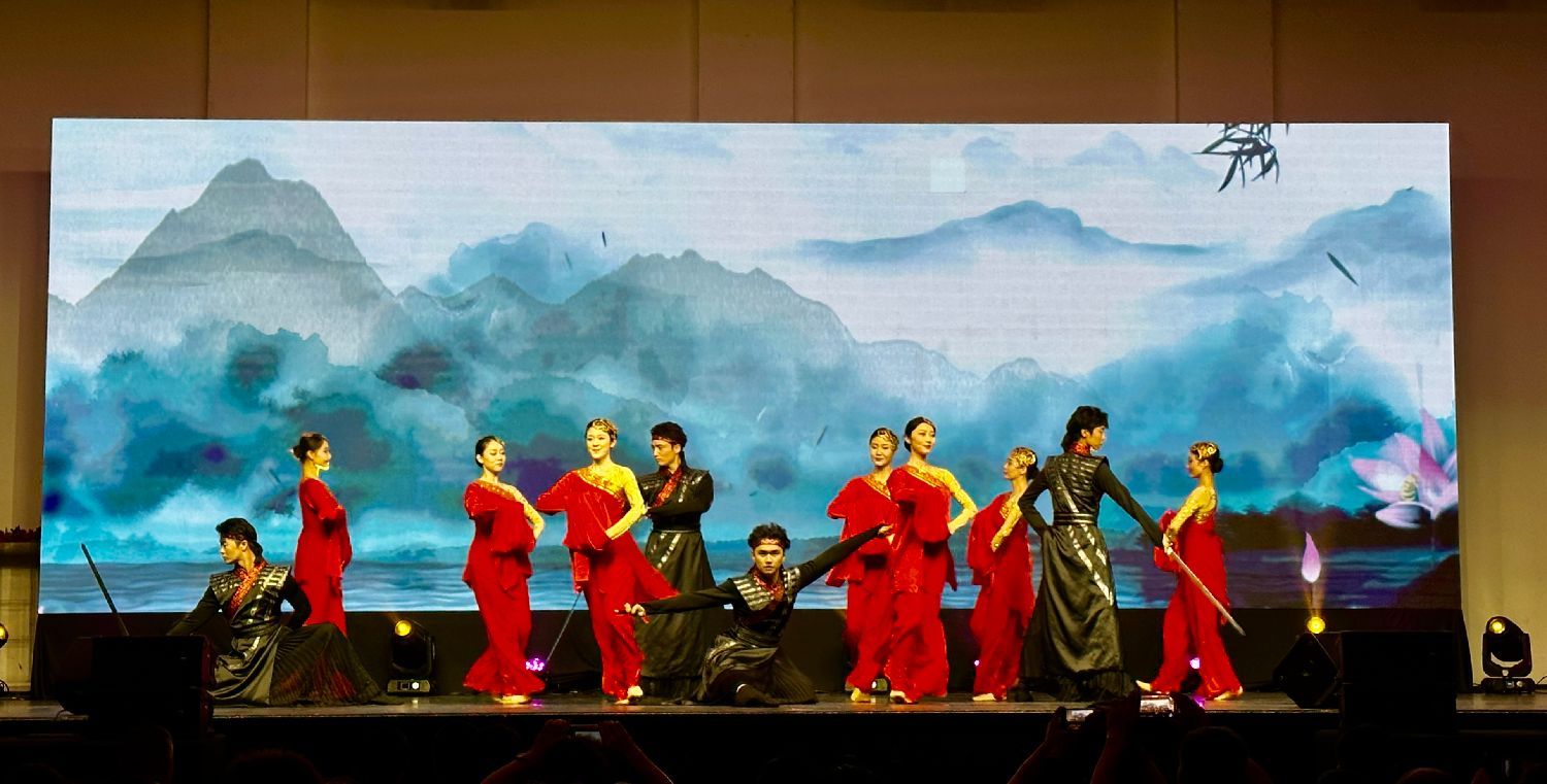京剧名家胡文阁带来的《贵妃醉酒》《梨花颂》,以醇厚的梅派唱腔、细腻的表演,将国粹京剧的韵味展现得淋漓尽致,让现场观众沉醉在京剧艺术的独特魅力中。演出在女高音歌唱家吴春燕的《茉莉花》及歌伴舞《灯火里的中国》中圆满落幕,悠扬的歌声与优美的舞蹈相得益彰,描绘出一幅温馨美好的中国画卷,在全场观众持续不断热烈的掌声中,演出气氛推向最后的高潮。