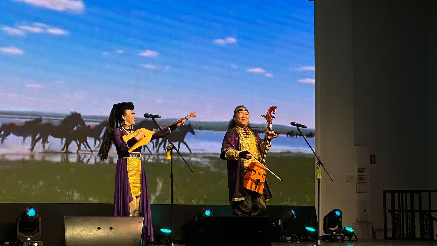 魔术师李克石的《金玉满堂》将中国传统古彩戏法推向高潮,60多件道具在他手中神奇变幻,脱衣变彩的瞬间更是引得全场惊呼,让观众领略到传统魔术的神秘魅力。蒙古利亚组合包连锁、山丹用马头琴、托布秀尔等民族乐器奏响《忠实的心儿想念你》《吉祥四季》,悠扬的旋律如春风拂面,将辽阔草原的壮美画卷徐徐展开。