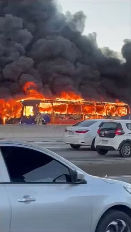 巴西大道外侧车道上着火的公交车。巴西网站“g1globo”