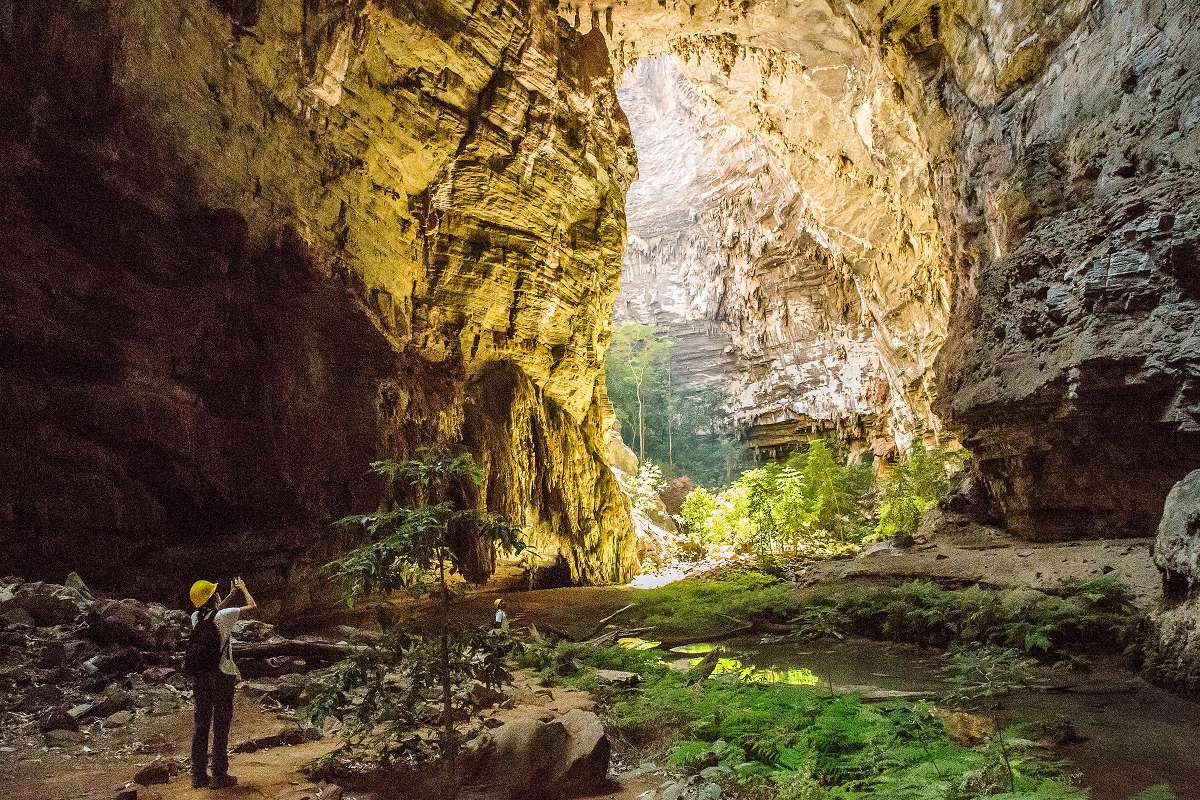 佩鲁阿苏岩洞国家公园以其独特的地质构造闻名于世。其主要景点之一是雅内劳洞穴(Gruta do Janelão),高度超过100米。这里也是世界上最大的钟乳石“芭蕾舞女之腿”(Perna da Bailarina)所在地。