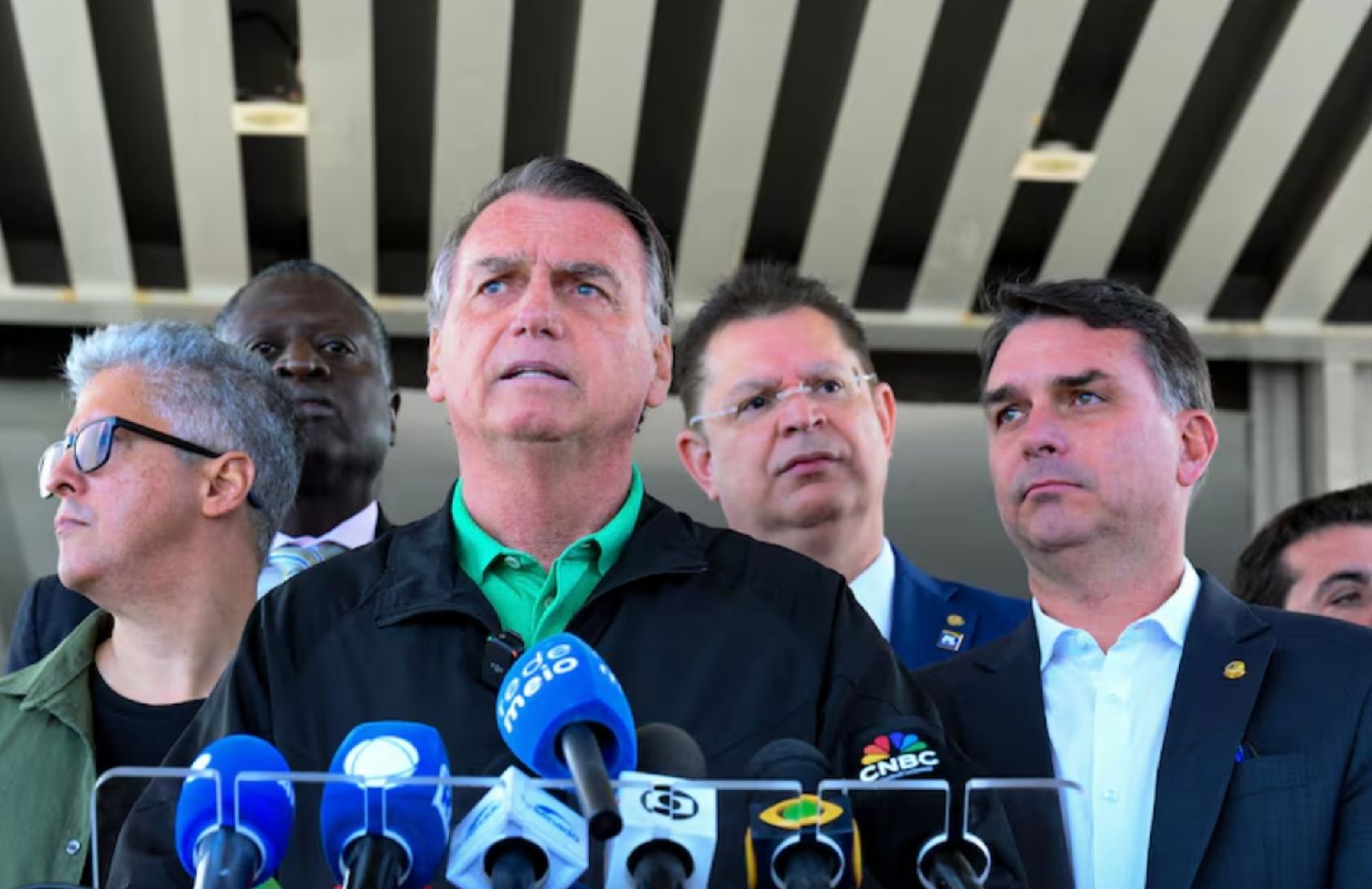 前总统雅伊尔·博索纳罗在联邦参议院外举行新闻发布会