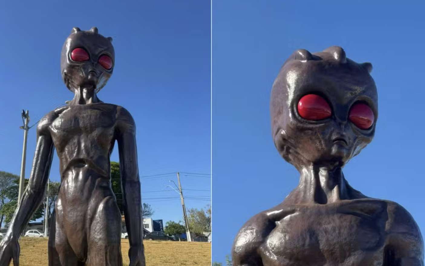 【南美侨报网编译晓兆9月11日报道】本周三(10日),以“外星人事件”而闻名的圣州内地瓦尔金亚(Varginha)市在旅游线路上再添新亮点——一座由艺术家黑纳托(Renato Criaturas)创作的4米高雕塑在维拉派瓦(Vila Paiva)社区外星人纪念馆前揭幕。
