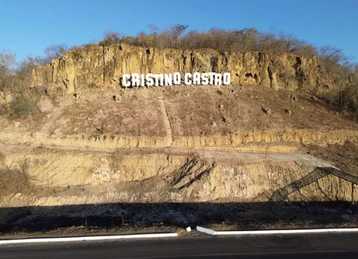 【南美侨报网编译晓兆9月11日报道】位于皮沃依州(PIAUÍ)南部的克里斯蒂诺·卡斯特罗(Cristino Castro)市将迎来一座以城市名字命名的巨型立体字母牌,灵感来自美国著名的好莱坞山地标牌。该地标已在城市入口处建成,并将在10月29日——市政建制74周年纪念日当天正式揭幕。