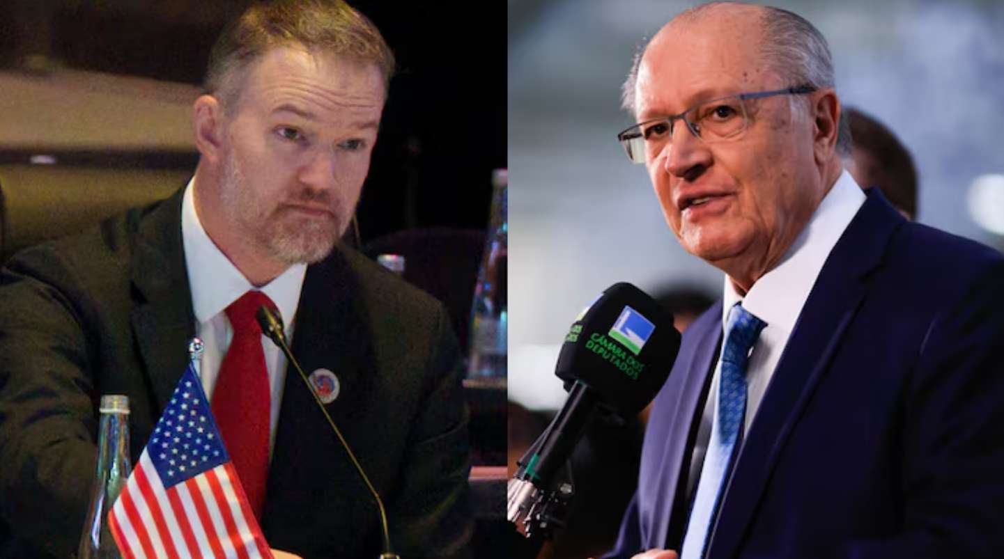 美国商业代表杰米森·格里尔(左),巴西副总统杰拉尔多·阿尔克明(右)