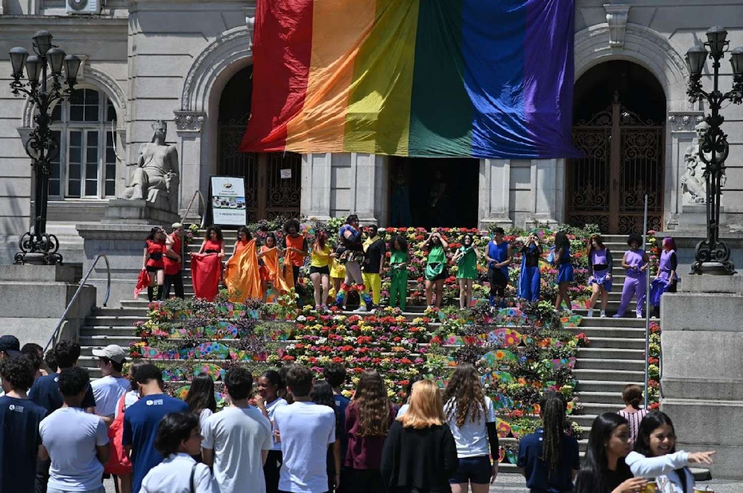 【南美侨报网编译张裕9月30日报道】巴西圣保罗州桑托斯市(Santos,São Paulo)第14届多元文化周(Semana da Diversidade)9月29日开启。当日下午,历史中心区毛阿广场(Praça Mauá,Centro Histórico)的艺术活动将市政府门前台阶变成了一个彩虹色舞台。