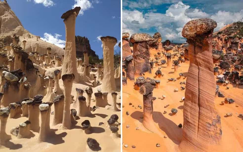 桑切斯介绍,托坎廷斯州(Tocantins)曾有较小规模类似地质构造的记载,而戈亚斯州这处奇观的独特之处在于,这片区域面积广阔、岩石群保存完整,并且拥有多个高度超过三米的“精灵烟囱”。此前,巴西官方从未记录过如此规模的地貌。
