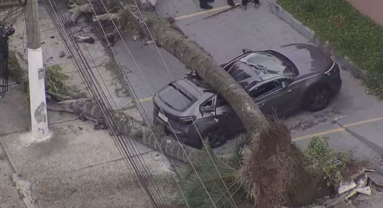 【南美侨报网编译晓兆10月14日报道】本周一(13日)下午,一棵大树在圣保罗南区布鲁克林区(Brooklyn)的Av.Professor Vicente Rao大道折倒,砸中一辆汽车。车辆被彻底毁坏,所幸无人受伤。