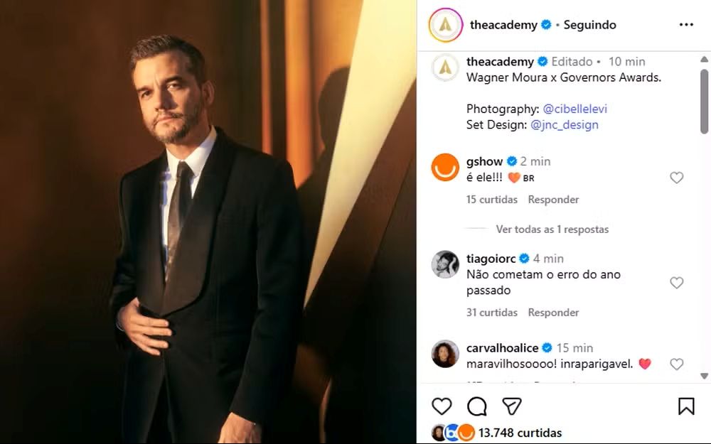 巴西“G1”网站报道,11月16日,瓦格纳出席了奥斯卡学院(The Academy)举办的州长奖颁奖典礼。该活动向包括汤姆·克鲁斯(Tom Cruise)在内的多位影人颁发了荣誉奖项。次日,奥斯卡学院在社媒Instagram的官方账号发布了瓦格纳的独照,引爆评论区,大量来自巴西的网民热情留言。