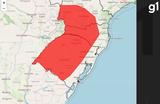 【南美侨报网编译晓兆12月9日报道】一股在巴拉圭与阿根廷之间形成的副热带气旋于本周二(9日)经过南大河州,根据Climatempo气象公司的说法,情况被归类为“极端危险”级别:预期将出现大范围强雷暴、冰雹、时速超过100公里的强风以及闪电。
