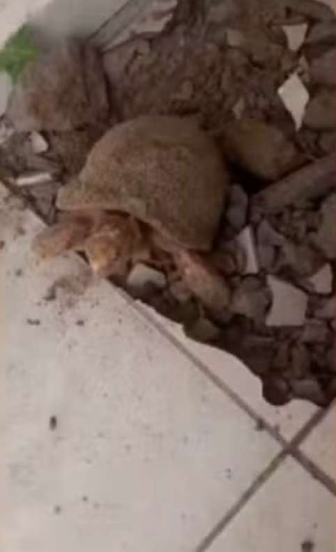 【南美侨报网编译晓兆12月17日报道】今年2月在托坎金斯州东北部伊塔卡雅市(Itacajá)的家中,60岁的路易扎·阿吉亚尔被吓了一跳——她在自家地板下发现了一只仍然活着的陆龟(jabuti)。当时,她因怀疑房屋存在渗水问题,请来一名泥瓦工进行检查,并认为这只动物可能已在地板下生活了将近10年,自她上一次对该区域进行翻修以来便一直被掩埋其中。