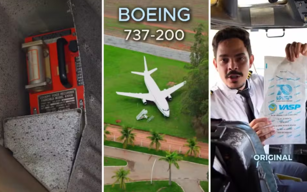 在本雅明发布的视频中,这位同时也是飞行员的医生(与父亲一样)带领网友近距离参观了这架已不再飞行的飞机。据他介绍,该飞机曾隶属于已停运的巴西航空公司Vasp,机上仍保留着该公司的原装服务纸袋、所谓“黑匣子”(实际上是橙色)、甚至还有航空煤油。