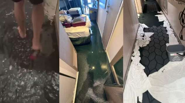 乘客提供的视频显示,邮轮走廊内积满了水。马塞洛称,大约有40间客舱受到漏水影响,涉及儿童、成年人及老年人。船员向乘客解释称,事故可能是船内一根高压供水管道爆裂所致。