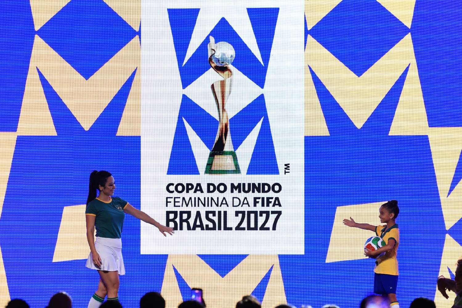 2027年女足世界杯会徽的设计融入了字母“M”和“W”,其设计兼顾了英语和葡萄牙语,对应“女性”(英文Women,葡语Mulher)和“世界”(英文World,葡语Mundo)的首字母。标志中心的菱形图案象征着巴西国旗,强化了东道主身份。