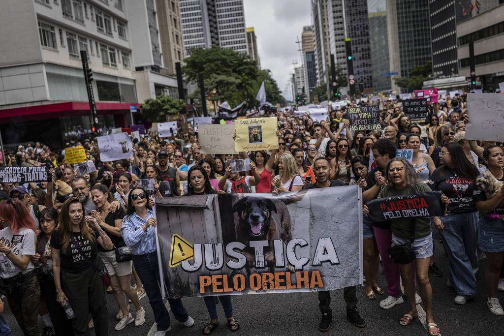 【南美侨报网编译段木心2月2日报道】2月1日,巴西圣保罗市保利斯塔大道(Avenida Paulista,São Paulo)举行示威游行,悼念在弗洛里亚诺波利斯市(Florianópolis)遭虐待致死的社区犬奥雷利亚(Orelha),并呼吁降低刑事责任年龄,严惩涉案的未成年人。