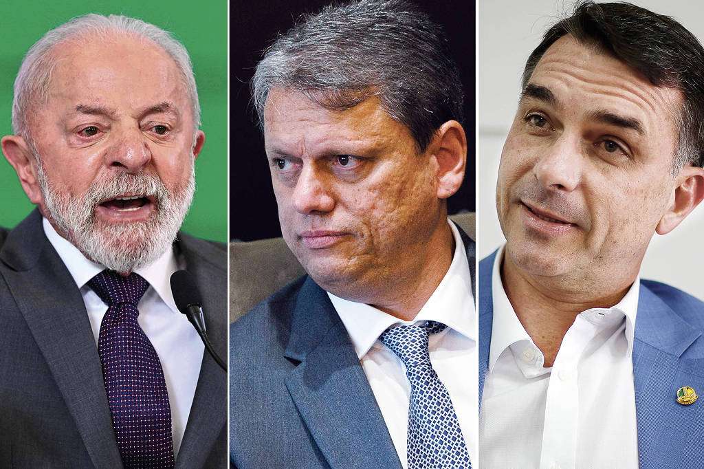 从左至右分别是卢拉总统(劳工党)、圣保罗州长塔西西奥·德弗雷塔斯(共和党)和参议员弗拉维奥·博索纳罗(自由党)