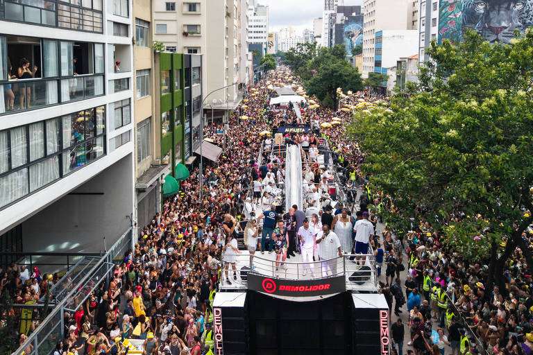 圣保罗市两个大型街头狂欢队在同一街区聚集,导致人群拥挤。《圣保罗页报》