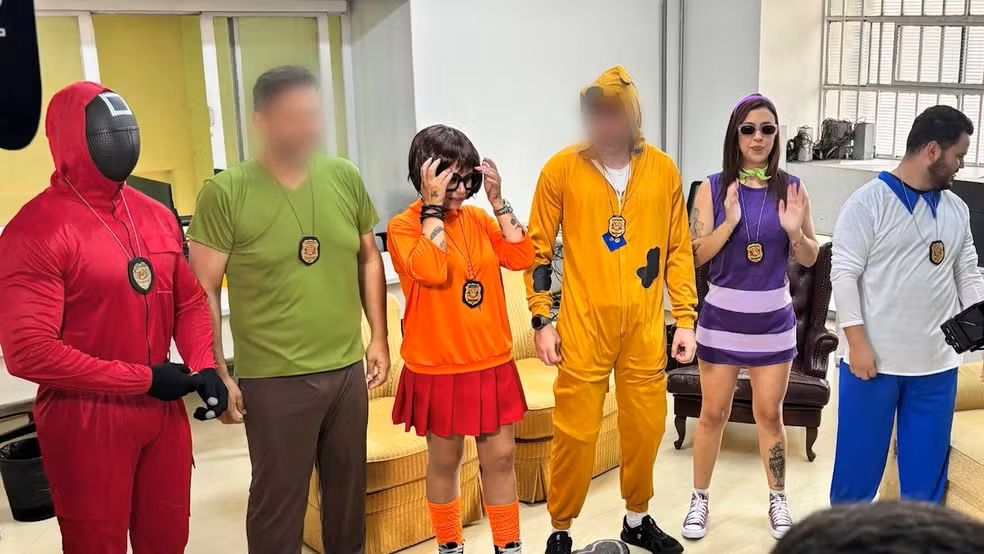 14日,多名警员身着动画片《史酷比》角色的服装,抓获盗窃嫌疑人。巴西“G1”网站