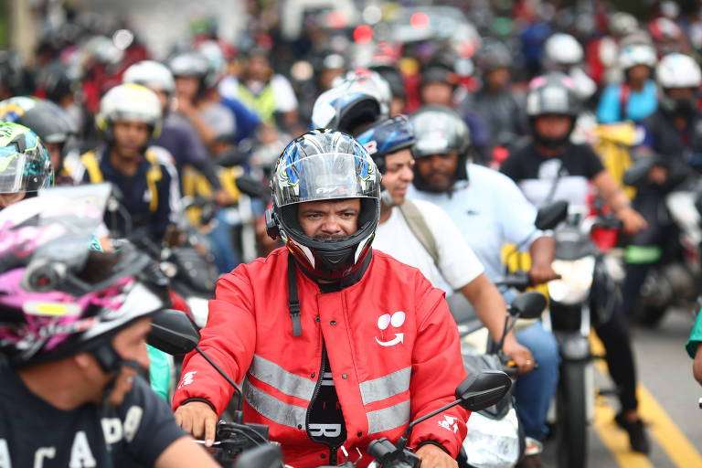 外卖平台摩托车送货员示威抗议。《圣保罗页报》