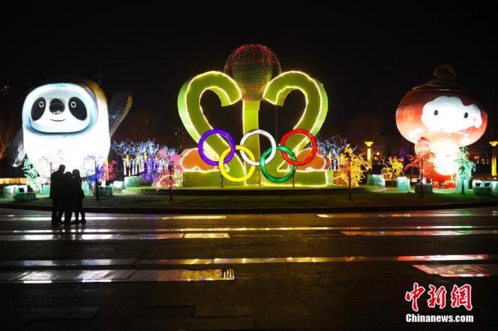 市民在河北省张家口市市民广场观赏冬奥主题花灯展。中新社资料图
