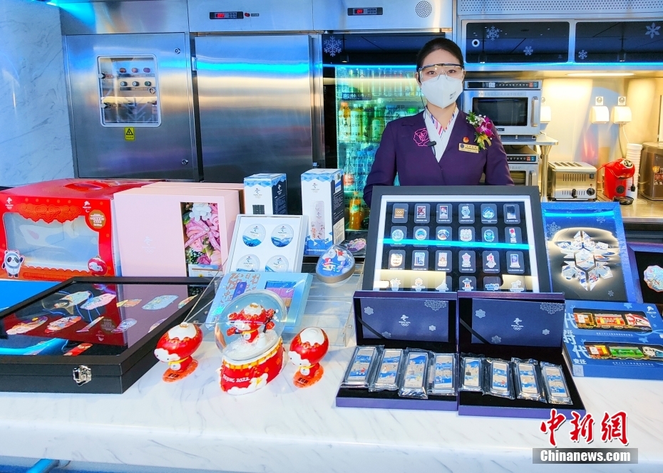 2021年12月30日,京张高铁G8812次列车上售卖冬奥特许商品。中新社