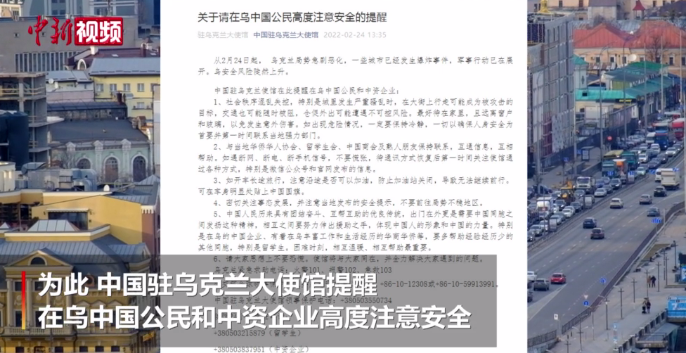 为此,中国驻乌克兰大使馆提醒在乌中国公民和中资企业高度注意安全。