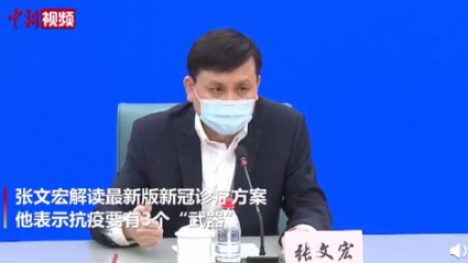 张文宏解读新版新冠肺炎诊疗方案。中新视频截图