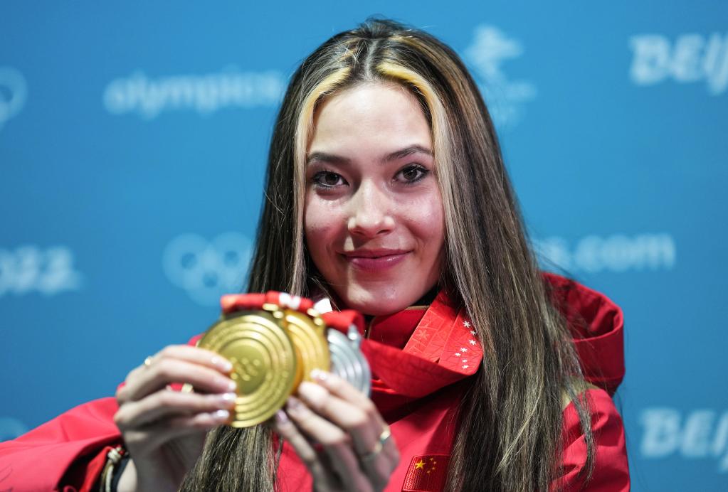 新华社报道,作为在北京冬奥会上最受关注的运动员之一,谷爱凌包揽U型场地技巧金牌、大跳台金牌和坡面障碍技巧银牌,成为第一位在一届冬奥会上获得三枚奖牌的自由式滑雪运动员。