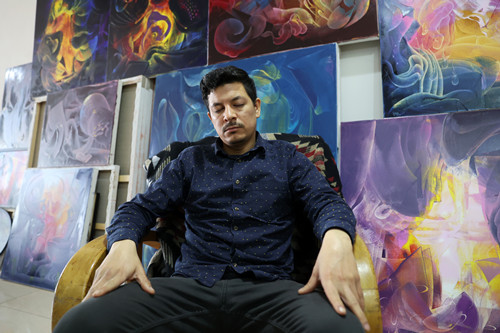 在Paz Viola位于北京宋庄小堡画家村的工作室中,摆放着多幅抽象作品,比如他从十二年前就开始创作和完善的《虚无之空》系列作品。“我希望这些画作能激发观者的想象,进入到画中描绘的梦幻世界。”