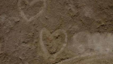 陕西考古博物馆内千年遗迹被涂抹上心形痕迹。央视视频截图