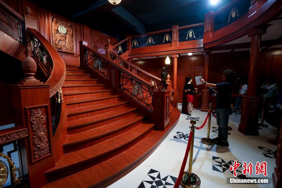 观众参观泰坦尼克号精品文物展大厅复原模型。中新社