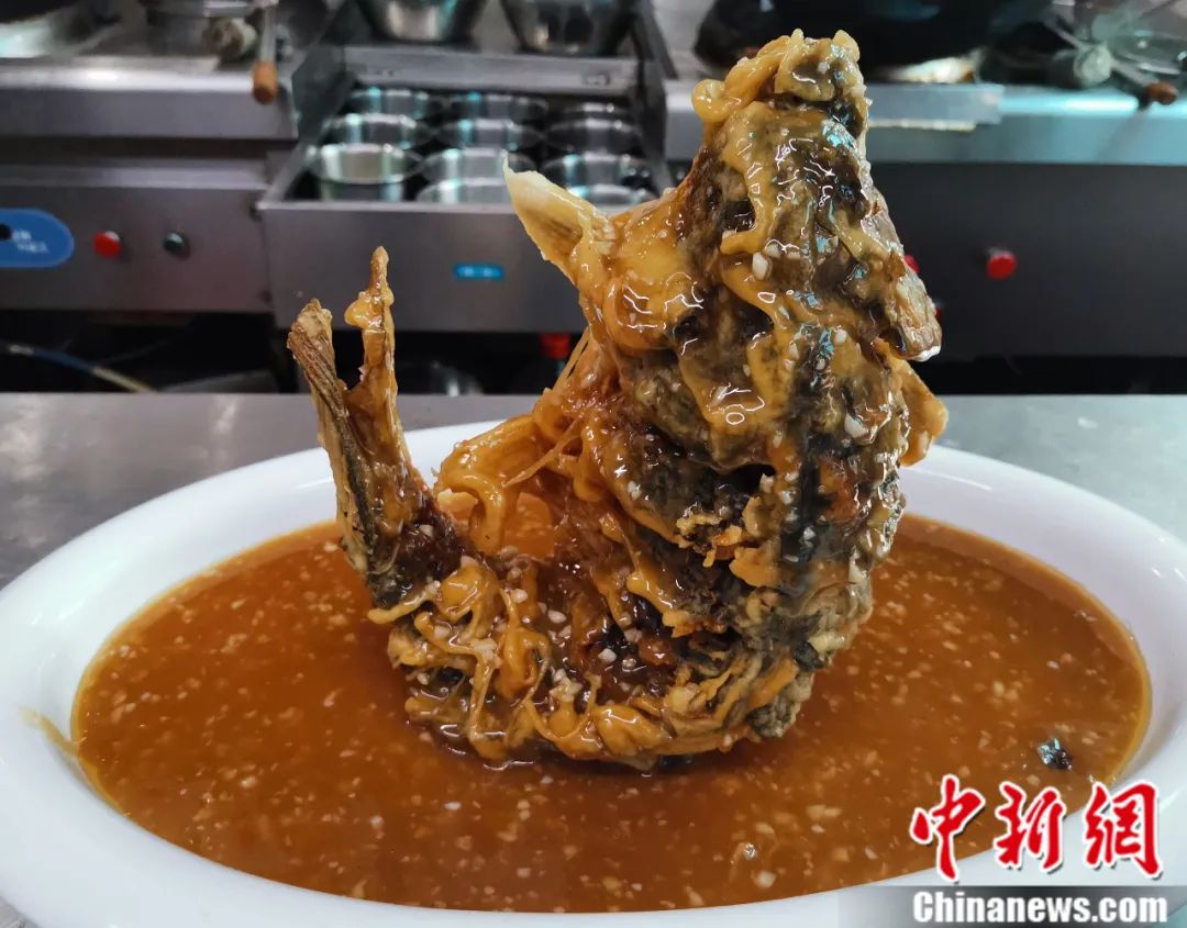 “用黄河鲤鱼做食材,油炸后淋汁而成,鱼肉外焦里嫩,味酸甜而稍有咸鲜。”邓君秋介绍说,为去除黄河鲤鱼身上的泥腥味,每条鱼在下锅前,都要在院内的甬元泉池中瘦养一周左右。