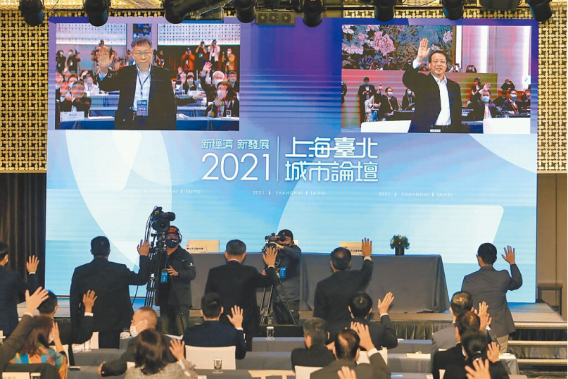 2022年上海台北双城论坛19日以视讯方式登场,将签订3项合作备忘录。中新社