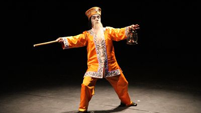 舞台剧《中国神话传说》在智利警察文化中心举行首演,智利艺术家身着中国服装进行演出。中国驻智利大使馆