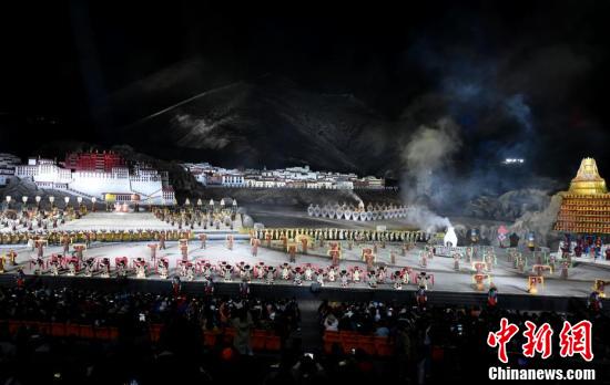 8月1日晚,《文成公主》大型史诗剧迎来十周年特别演出。中新社
