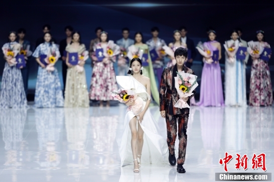 9月12日晚,中国国际时装周(2023春夏系列)在北京闭幕,陈慧佳(左)、黄向鹏荣获2022年度最佳职业时装模特。中新社