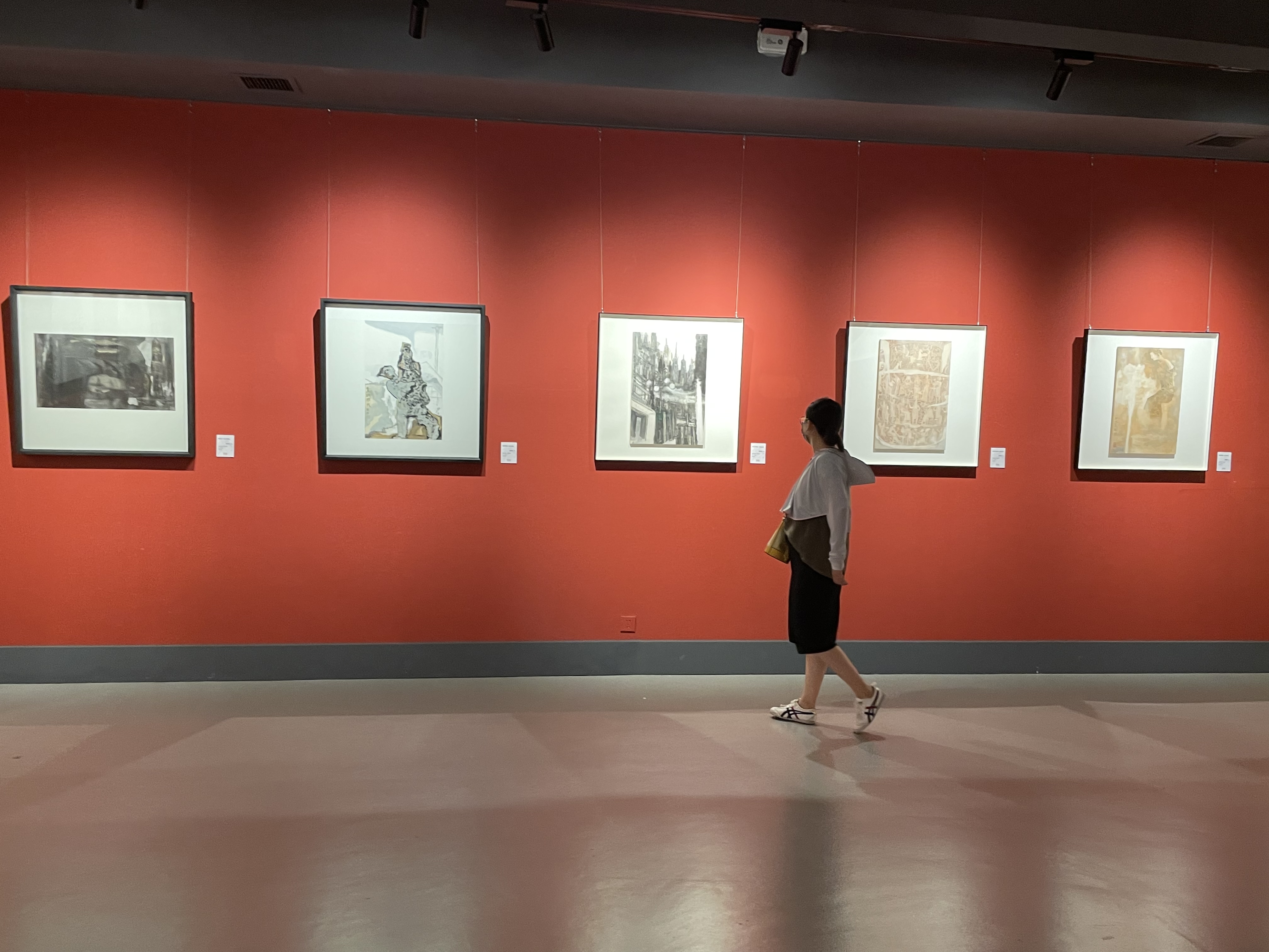 中国知名画家莫晓松近年来常以中国美术家的目光审视西方文明遗迹,多次往返于雅典、罗马、西西里岛、米兰等异邦采风写生,心游四海。图为他用工笔画绘成的古希腊罗马文明遗迹。图为现场观众欣赏画作并拍照留念。南美侨报特约记者齐格摄