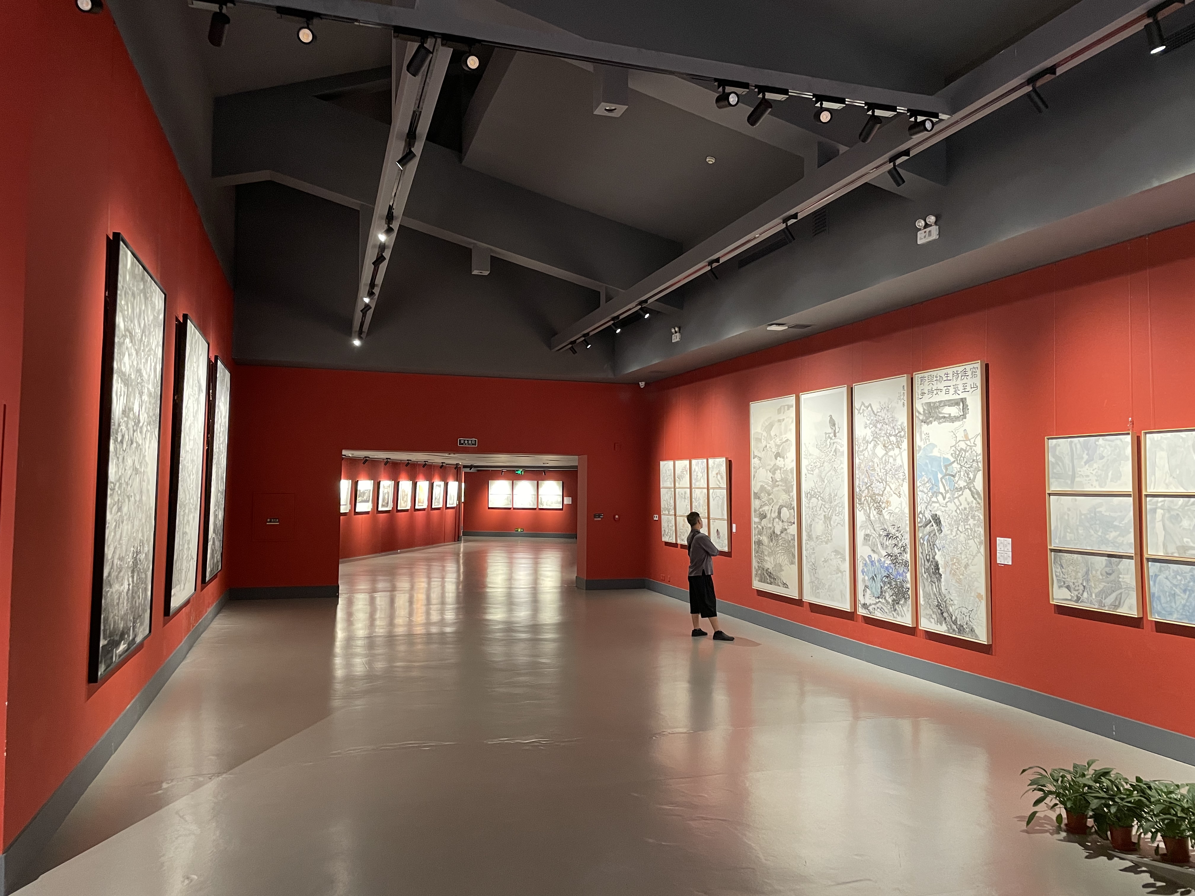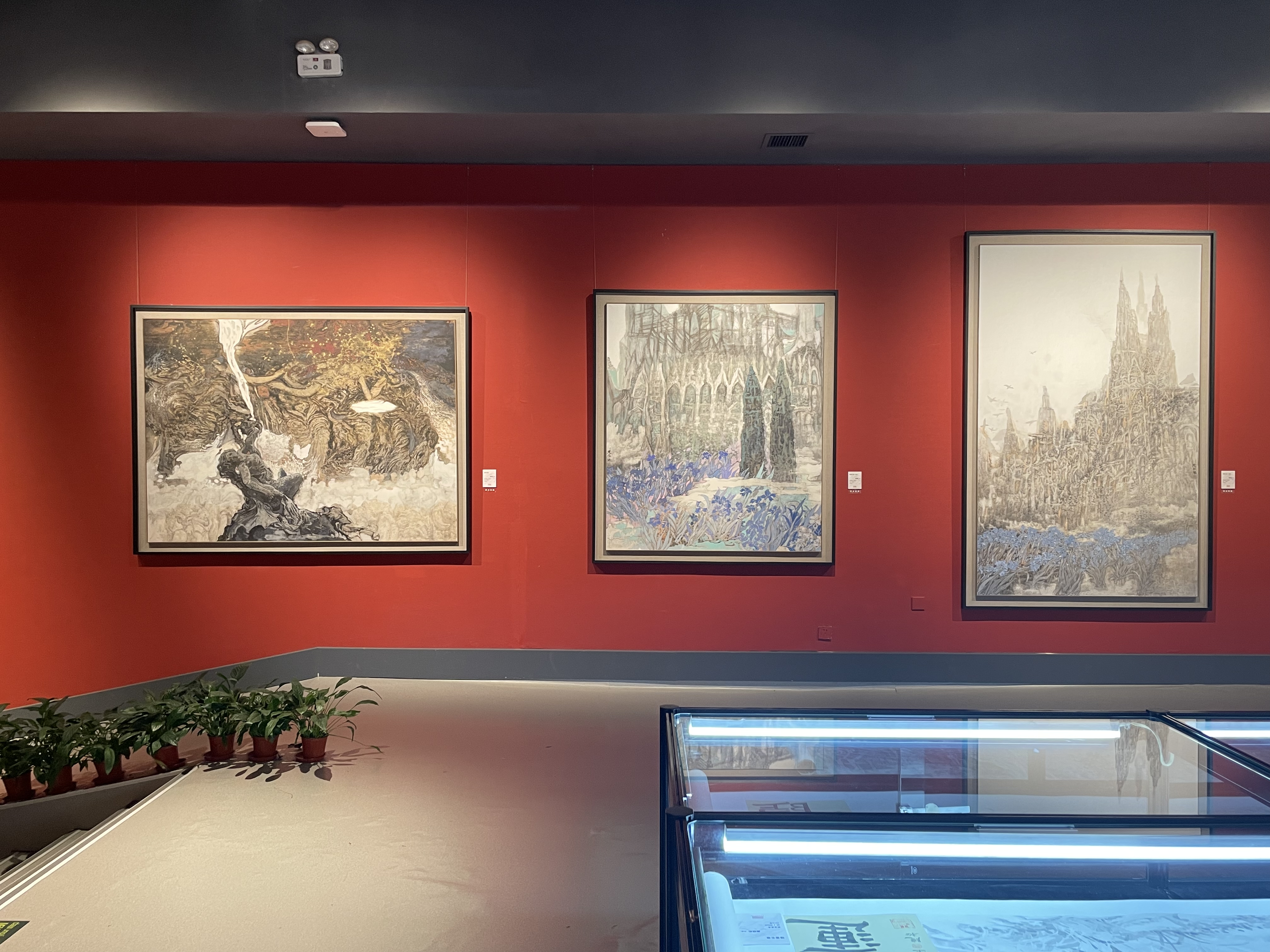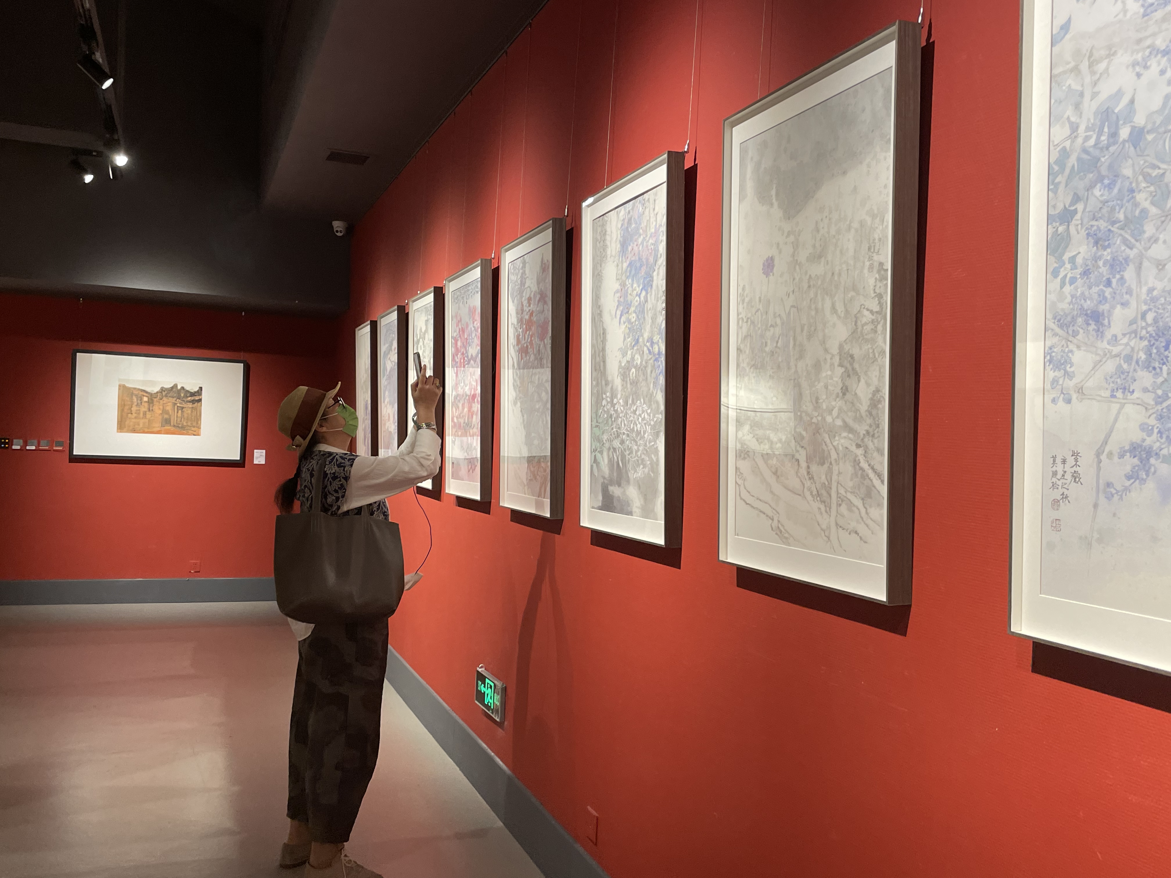 “寻迹思远——莫晓松中国画作品展”近日北京奥林匹克森林公园书画频道美术馆开展,展览亮点之一在于表现古希腊、古罗马文明遗迹的“寻迹缪斯”水墨彩画作品。图为观众观看画作。现场观众欣赏画作并拍照留念。南美侨报特约记者齐格摄