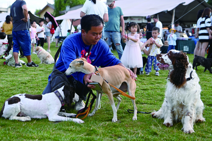 7月16日,云南丽江,民众与宠物互动。中新社