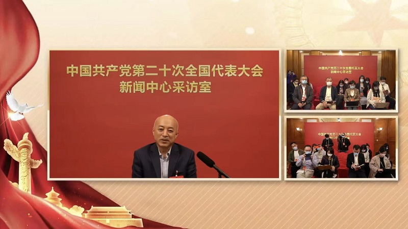 中共二十大新闻中心20日举办的小型集体采访活动上,故宫博物院院长王旭东通过视频方式接受采访。视频截图