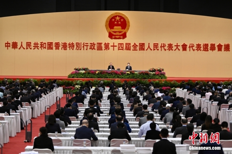 香港特别行政区第十四届全国人大代表选举会议第一次全体会议11月21日在香港举行,选举会议成员1107人出席了会议。中新社