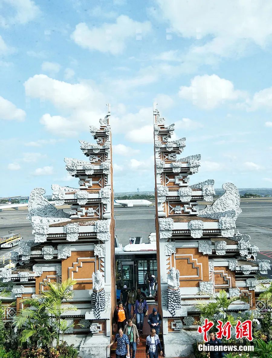 建于巴厘岛伍拉莱国际机场的“天空之门”,该建筑是巴厘岛的代表性建筑形制。中新网