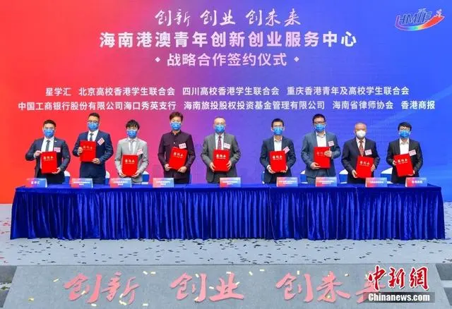 海南港澳青年创新创业服务中心战略合作签约仪式现场。 中新社