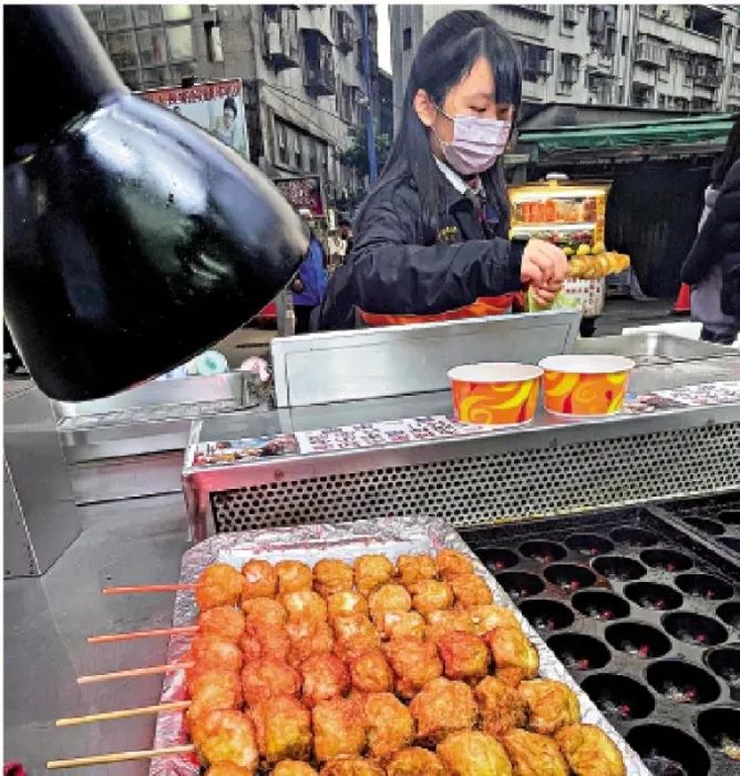 台湾民众在夜市购买以鹌鹑蛋为原料的热门小吃烤鸟蛋。厦门华夏经纬网