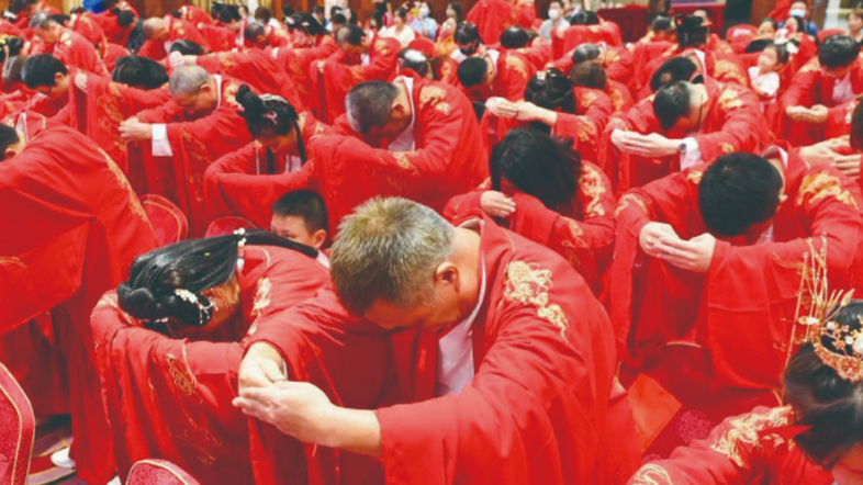 2022年8月4日,“情牵两岸,缘定湖里”2022湖里区首届海峡两岸七夕牵手会隆重举办,50对两岸佳偶以中式集体婚礼的方式,共度七夕佳节。福州《福建日报》