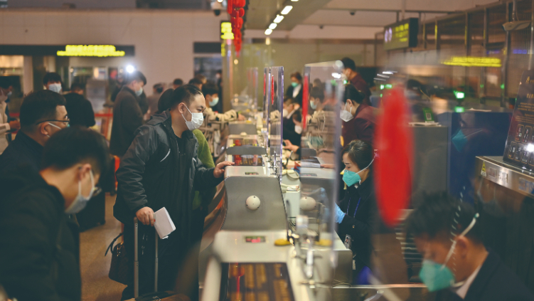 ▲6日,暂停三年的旅行社出境游业务恢复,赴泰旅客办理乘机手续。中新社