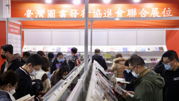 2月24日,第35届北京图书订货会在北京开幕,读者在台湾图书发行协进会联合展位阅读书籍。中新社