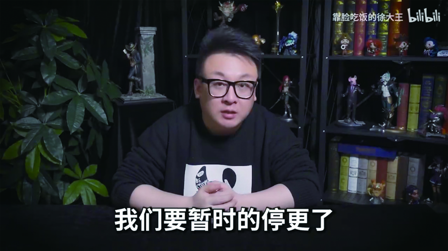 拥有385万粉丝的UP主@靠脸吃饭的徐大王于近日宣布停更。视频截图